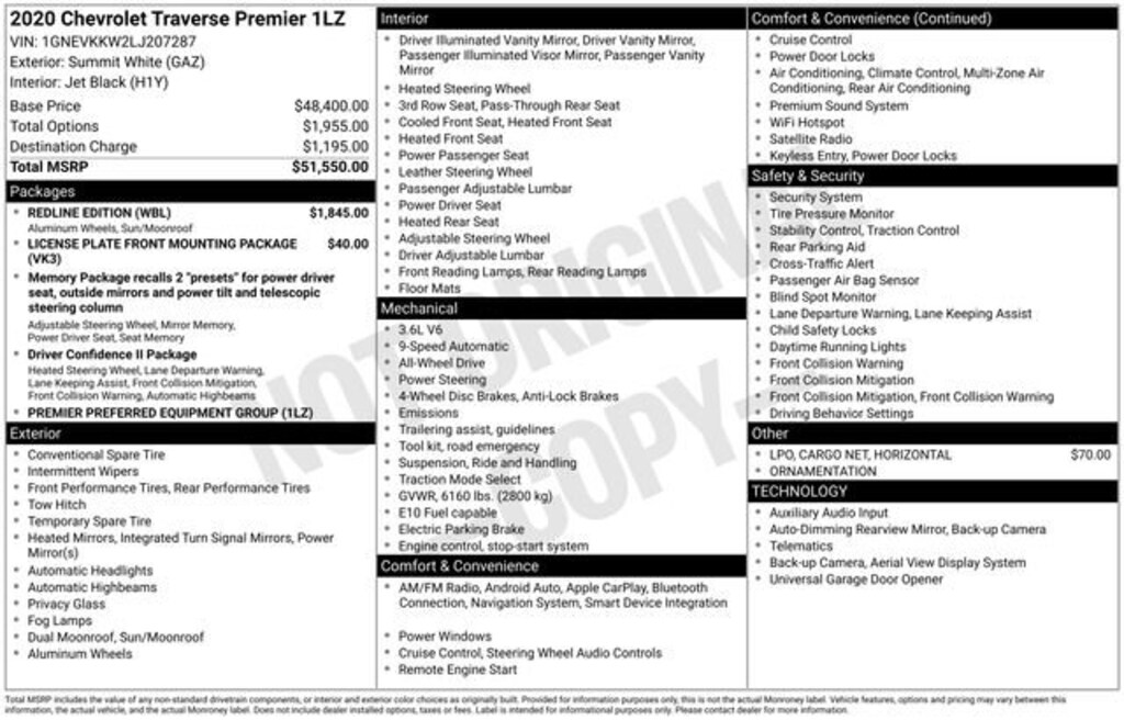 Used 2020 ChevroletTraverse Premier