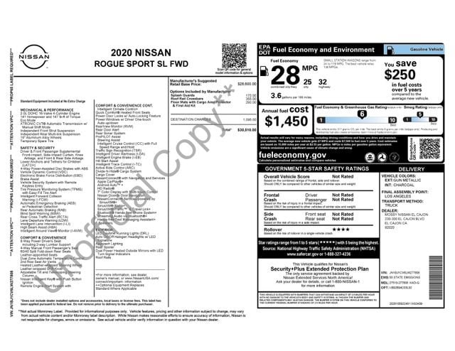 2020 Nissan Rogue Sport SL Gun Metallic FWD CVT with Xtronic 2.0L DOHC 25/32 City/Highway MPG